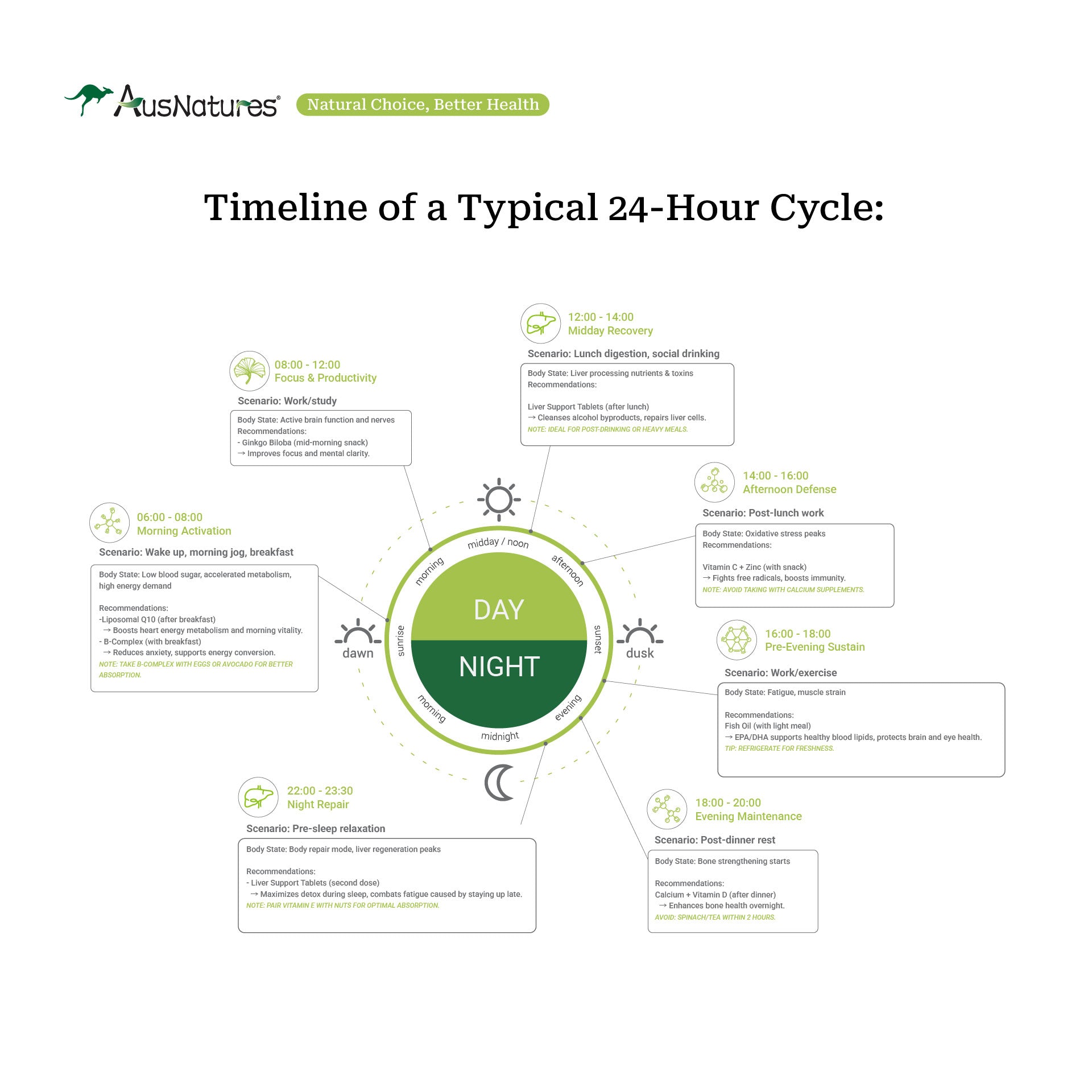 - Powers cellular energy production throughout the day